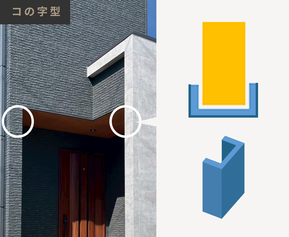 建物の顔である玄関やエントランスは凹凸がいっぱいでデザイナーさんや設計士さんの腕のみせどころです。自由なサイズや複雑な形状の出隅作製でシーリング目地位置が意匠の邪魔をしないこだわりの設計を実現します。