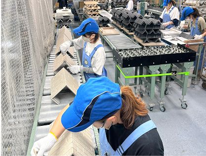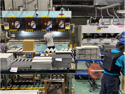 従来、現場の形状に合わせた異形出隅(少量)を、サイディングの工期(短納期)に合わせて製造&納品することは非常に困難であるとされてきました。そこで当社は国の生産性向上補助事業を利用し、多品種少量対応型の最新超速製造ラインを構築することで、リードタイムを半減させることに成功し、供給を可能にしました。
